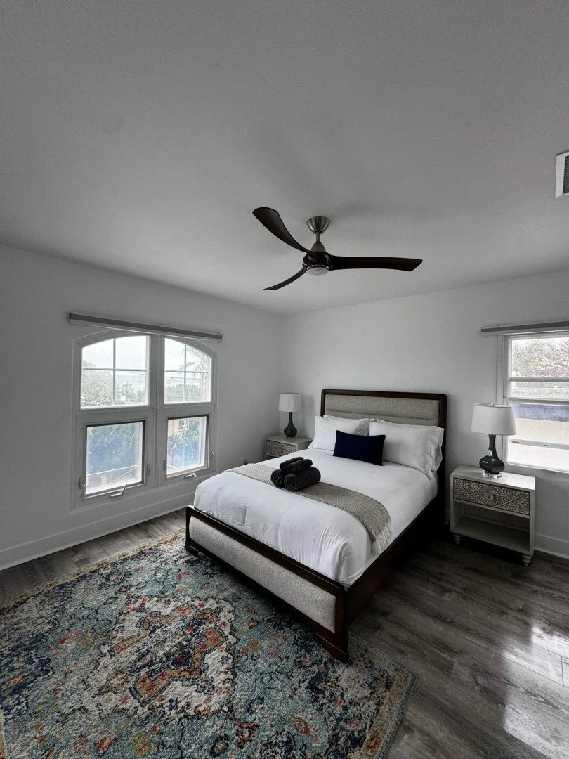 We supply hotel quality all white linens for every turnover, including sheets, duvets, towels, washcloths, etc. All linens are professionally washed in hot water, sanitized, and pressed for a crisp no wrinkle finish. Towels are fluffed and folded neatly, beds are made with care, and everything is ready for your next guest. If a guest stains or damages anything, we replace it immediately. No laundry, no loss, no stress, just a consistently clean, polished, guest ready unit every time.